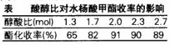 酸醇比對(duì)水楊酸甲酯收率的影響當(dāng)酯化反應(yīng)在回流狀態(tài)時(shí),催化劑用量為10%,酯化反應(yīng)時(shí)間為3h,反應(yīng)溫度為75-80℃,使用不同的酸醇比可獲得不同的醋產(chǎn)率,影響結(jié)果見(jiàn)下表: